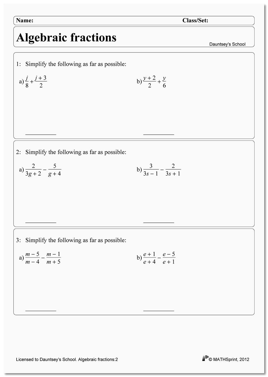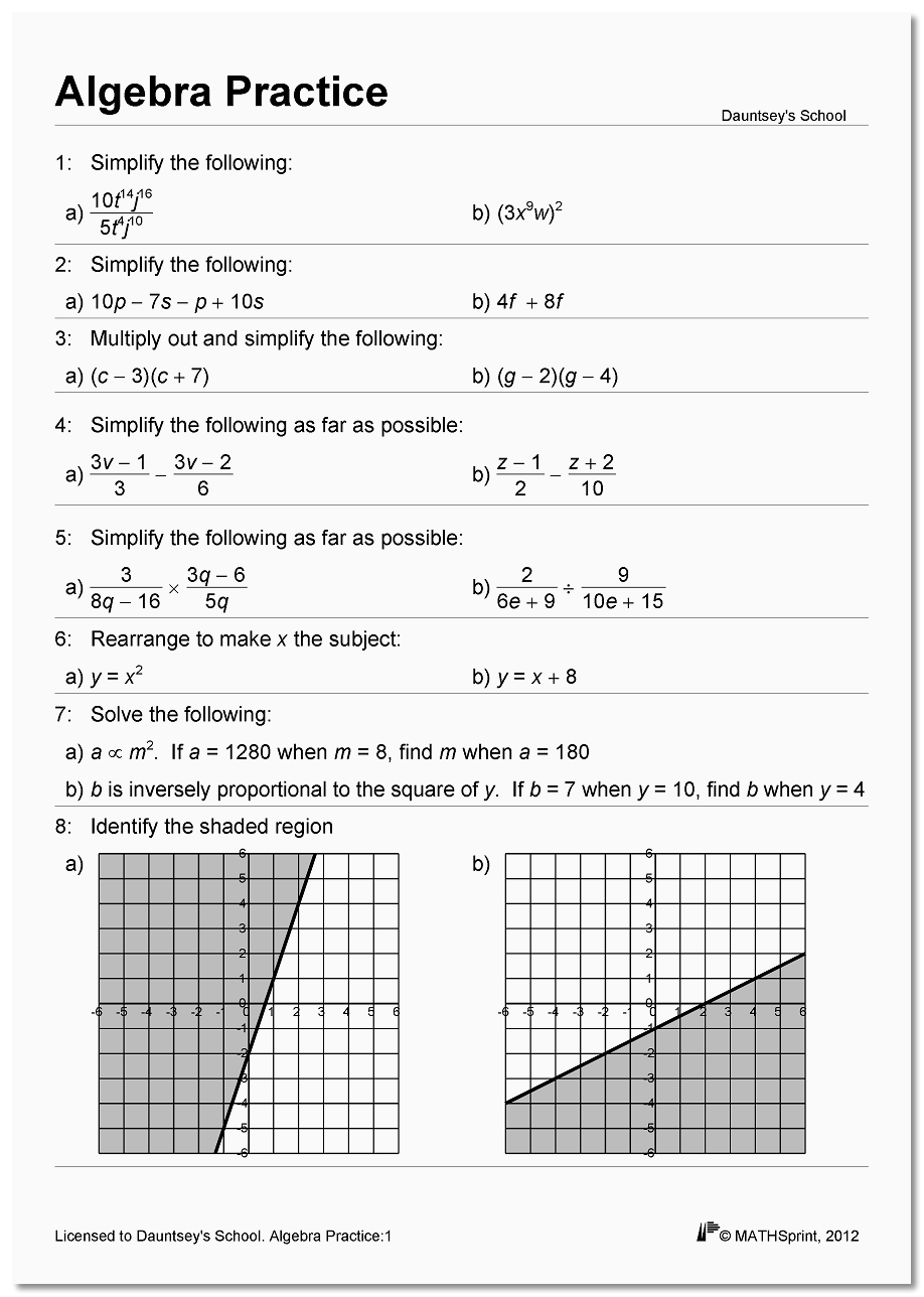 Furthermore, the fact that MATHSprint can combine diverse topics within the same worksheet can save you money by reducing the need for several separate worksheets (on Number, Algebra, Shape and Space, etc.) when preparing for examinations.
