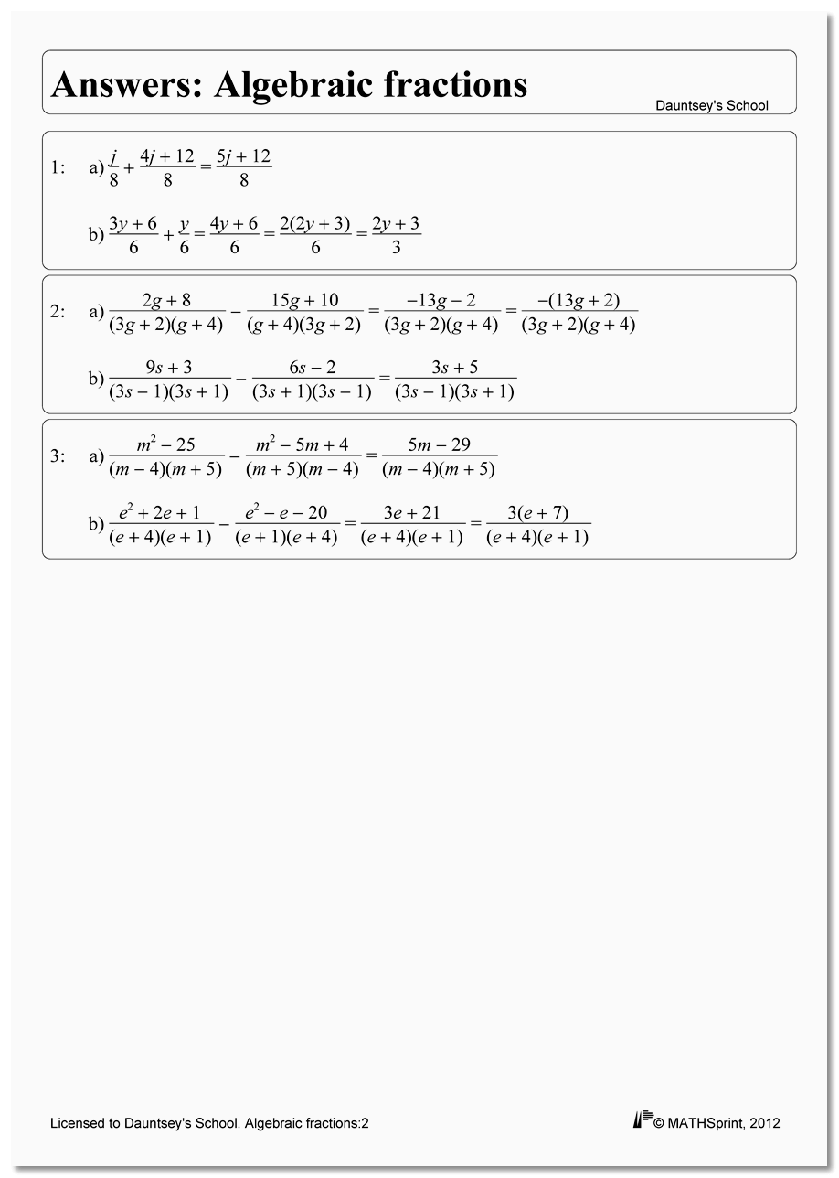 Solutions are generated automatically for ease of marking, with steps in working shown where appropriate.